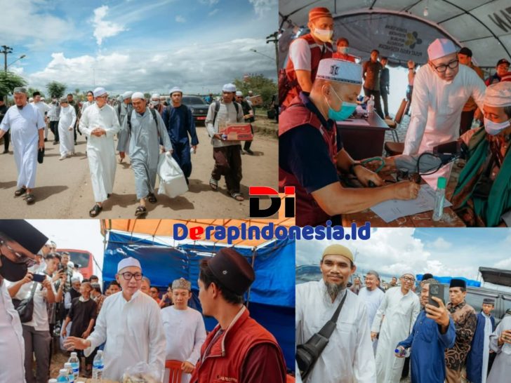 Lampung, Derap Indonesia — Gubernur Lampung, Rahmat Mirzani Djausal meninjau pelaksanaan Tabligh Akbar Indonesia Berdoa yang menjadi rangkaian Ijtima Ulama Dunia di kawasan Kota Baru, Lampung Selatan, Jumat (28/11/2025).