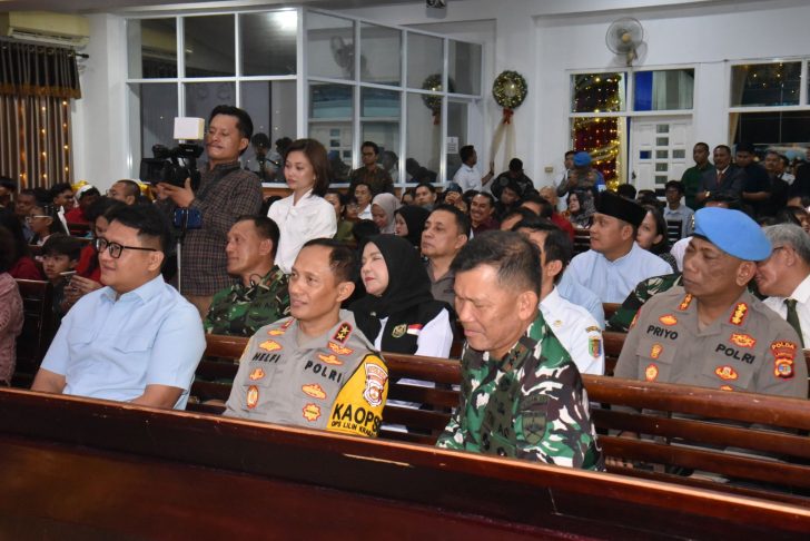 Lampung, Derap Indonesia– Memastikan keamanan dan kelancaran perayaan malam Natal 2025, Kapolda Lampung Irjen Pol. Helfi Assegaf bersama Gubernur Lampung Rahmat Mirzani Djausal melakukan monitoring langsung ke sejumlah gereja di Kota Bandar Lampung, Rabu (24/12/2025) malam.