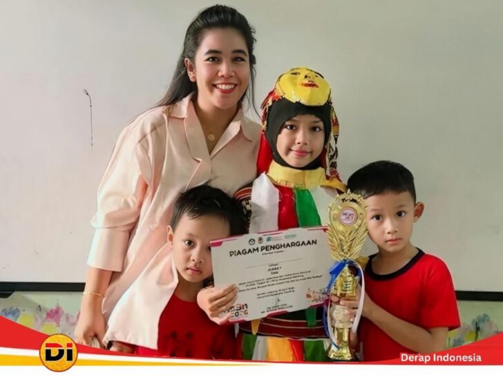 Neisya Zivvana Rifaj bersama kedua adik tercintanya Attaqy Zivvano Rifaj dan Abiyu Zivvanu Rifaj, nampak ceria bersama sang mamanya Amalia Mitra Sari usai acara lomba, Sabtu, (18/4/2026) Poto : Istimewa