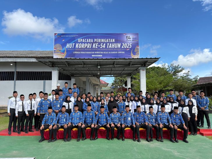 Lampung, Derap Indonesia – Lembaga Pemasyarakatan Narkotika Kelas IIA Bandar Lampung melaksanakan upacara peringatan Hari Ulang Tahun Korps Pegawai Republik Indonesia (KORPRI) ke-54 pada Senin, 01 Desember 2025.