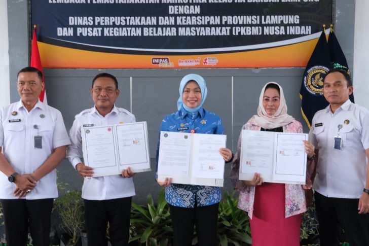 Kegiatan ini dihadiri oleh Kalapas Narkotika Bandar Lampung, Jumadi, beserta jajaran, Kepala Dinas Perpustakaan dan Kearsipan Provinsi Lampung, Fitrianita, serta Ketua PKBM Nusa Indah, Purwigati, yang bersama-sama meneguhkan kolaborasi strategis dalam peningkatan layanan pendidikan dan literasi di lingkungan pemasyarakatan.