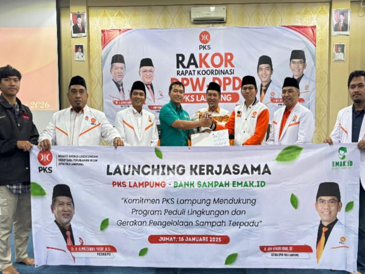 LAMPUNG, DeRAP INDONESIA – Dewan Pimpinan Wilayah Partai Keadilan Sejahtera (PKS) Provinsi Lampung resmi menandatangani nota kesepahaman (MoU) dengan Bank Sampah Emak.id, Jumat (16/1/2026).
