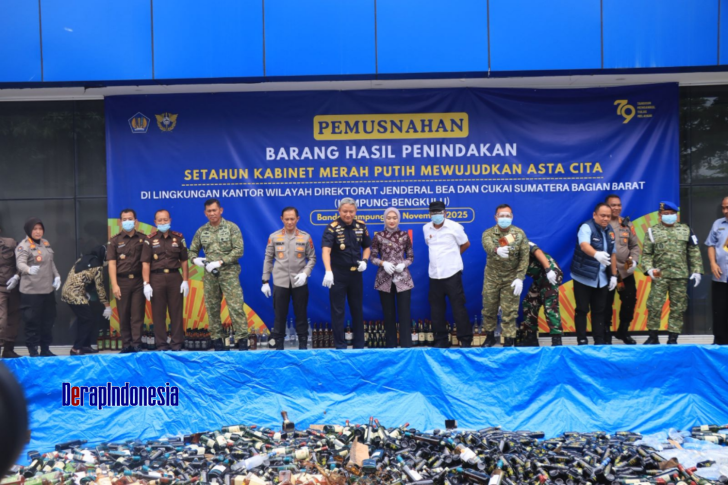 Lampung, Derap Indonesia – Kapolda Lampung Irjen Pol. Helfi Assegaf menghadiri Konferensi Pers dan Pemusnahan Barang Hasil Penindakan oleh Bea Cukai Lampung di Kantor DJBC Wilayah Sumatera Bagian Barat, Bandar Lampung, Kamis (6/11/25).