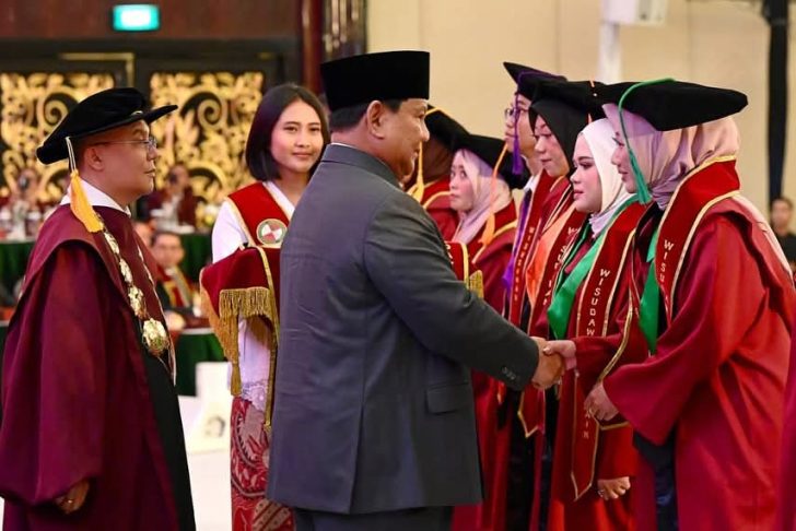 Jakarta,Derap Indonesia – Presiden Prabowo Subianto menghadiri Sidang Senat Terbuka dalam rangka Pengukuhan Mahasiswa Baru Sarjana dan Magister Tahun Ajaran 2025/2026 serta Wisuda Sarjana sekaligus Dies Natalis Universitas Kebangsaan Republik Indonesia (UKRI) Tahun 2025. Acara berlangsung dengan khidmat di Trans Convention Centre, Kota Bandung, Provinsi Jawa Barat, Sabtu (18/10/2025).