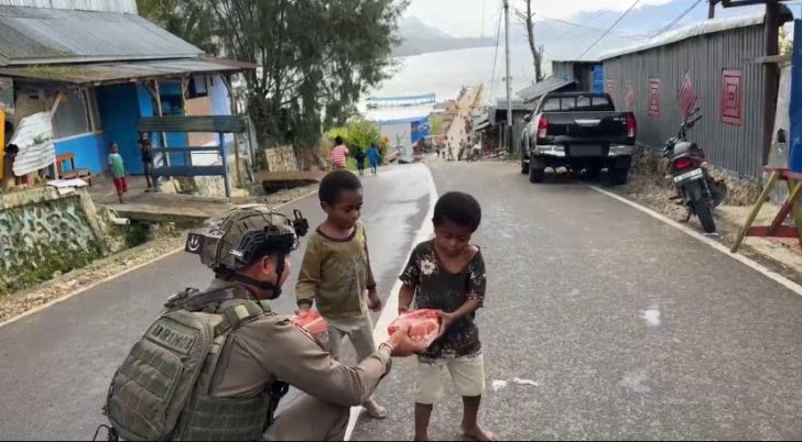 Enarotali, Paniai Timur, Derap Indonesia — Dalam rangka memperingati Hari Ulang Tahun Korps Brimob Polri ke-80, Satgas Ops Damai Cartenz Sektor Paniai melaksanakan bakti sosial dengan membagikan paket makanan kepada warga di Jl. Aikai, Enarotali, Kabupaten Paniai Timur, pada Jumat (14/11/2025). Kegiatan dipimpin langsung oleh Ipda Nofri Surya Rossa selaku Dansektor Satgas Tindak Sektor Paniai dan melibatkan personel Brimob serta anggota Satgas yang bertugas di wilayah tersebut.