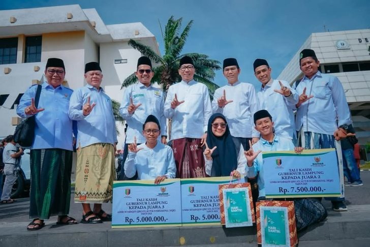 Dalam amanatnya, Gubernur Lampung, Rahmat Mirzani Djausal membacakan sambutan tertulis Menteri Agama RI Dr. Nasaruddin Umar, MA yang menekankan peringatan Hari Santri merupakan sebuah momentum penuh berkah penuh cinta dan kebanggaan.