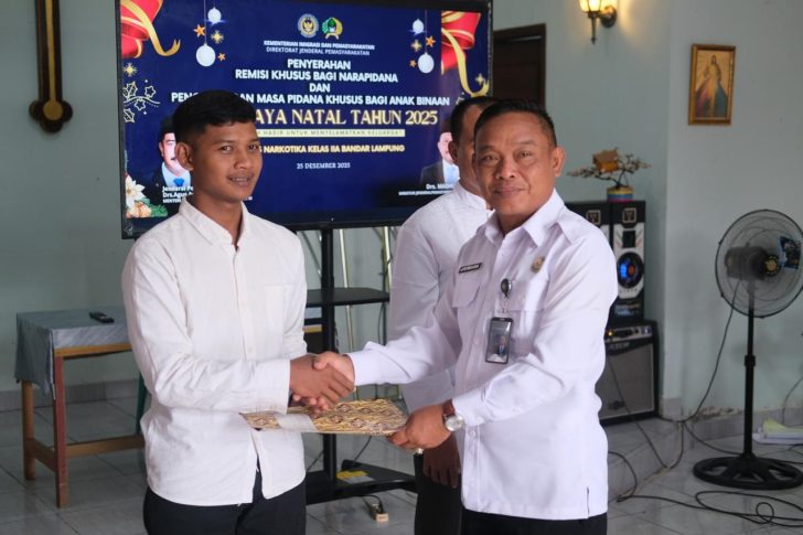 Kepala Lapas Narkotika Kelas IIA Bandar Lampung, Jumadi, menyampaikan bahwa pemberian Remisi Khusus Natal merupakan bentuk kehadiran dan penghargaan negara kepada warga binaan yang telah memenuhi persyaratan administratif dan substantif serta menunjukkan perubahan sikap dan perilaku positif selama menjalani masa pidana.