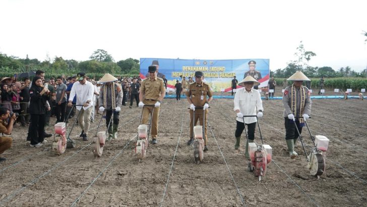 Penanaman dilakukan secara simbolis sebagai tanda dimulainya rangkaian tanam jagung skala luas di wilayah tersebut.